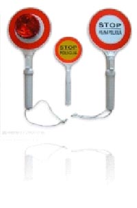 • Promjer natpisnog dijela je 200 mm, debljine 5 mm. Na jednoj strani se nalazi naljepnica od samoljepljive EG reflektirajue folije garantirane trajnosti 7 godina sa crvenim vanjskim prstenom promjera O 185/130 mm, unutar kojeg je na utoj EG reflektirajuoj foliji odtampan natpis STOP/POLICIJA u crnoj boji. Na drugoj strani se nalazi svjetiljka promjera 100 mm sa crvenim filterom ukupne visine 40 mm, oko koje je naljepljena EG reflektirajua naljepnica O 185/130 mm sa natpisom STOP POLICIJA u crnoj boji.